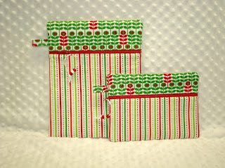 And here are 3 sets of bags from a design by Kristin Link of Sew Mama Sew. She offered up a lovely no-raw-edges front zip pouch tutorial several years ago, then gave us a great bonus of a tutorial do make the bag in more sizes! Both links are on my zipper tutorial page (